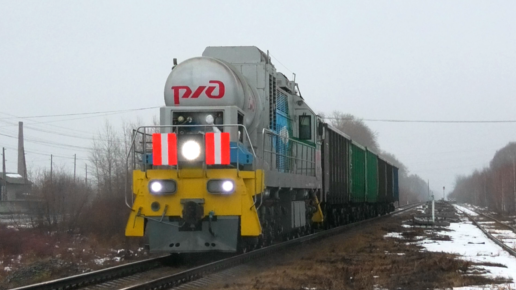 Газотепловоз ТЭМ19-001 в магистральной работе с грузовым поездом