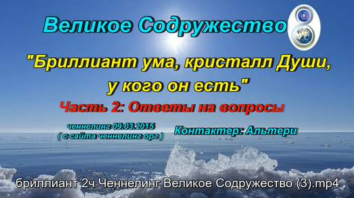 Ченнелинг Великое Содружество "Бриллиант ума, кристалл Души, у кого он есть". часть 2: Ответы на вопросы 09.03.2015