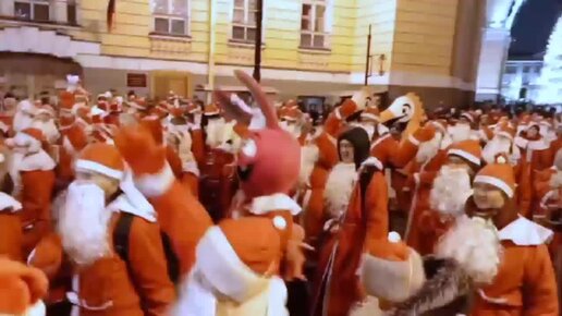 Как Деды Морозы по Дворцовой площади в Санкт-Петербурге забег устроили. Осторожно, в погоне за Новым годом бегут все!