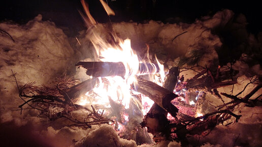 Ночной лыжный поход в зимний лес / Зимой в лесу у костра