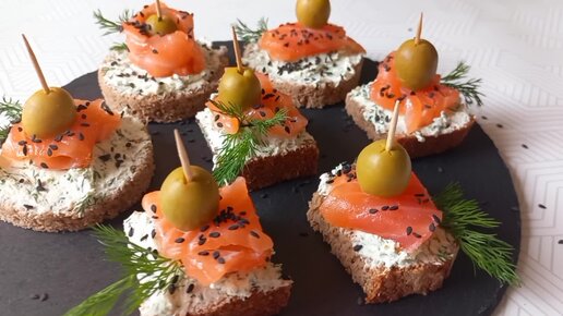 Канапе с семгой и сливочным сыром. Простая Вкусная Закуска на Праздничный стол