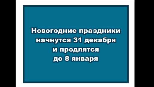 Новогодние праздники начнутся 31 декабря и продлятся до 8 января