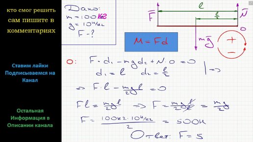 Физика На земле лежит прямолинейная однородная труба массой 100 кг Какую минимальную силу нужно приложить к концу трубы чтобы приподнять ее