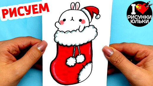 Как Зайчика Моланга в Новогоднем Носке Рисунки на Новый Год 2023 | Новогодние Рисунки Юльки