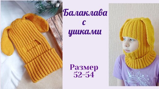 Теплая и плотная балаклава с ушками вязаная спицами /подробный мастер класс/ размер 52-54