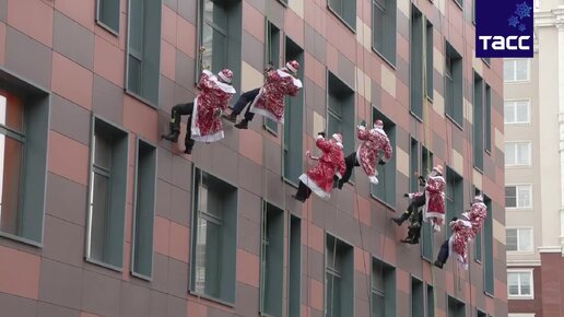 Десантирование Дедов Морозов с крыши Морозовской детской больницы в преддверии Нового года