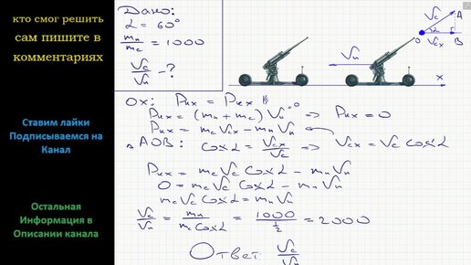 Физика Снаряд вылетает из ствола пушки, закрепленной на железнодорожной платформе, вдоль рельсов под углом 60 к горизонту. Каким будет