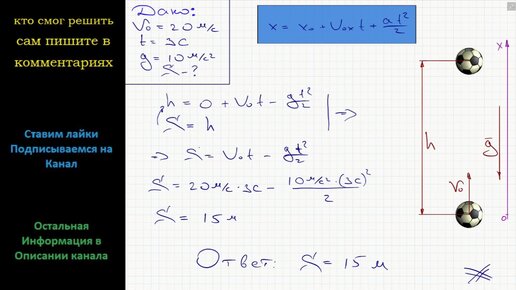 Физика Мяч брошен вертикально вверх с начальной скоростью 20 м/с Чему равно перемещение мяча за 3 с считая от момента броска? Сопротивлением