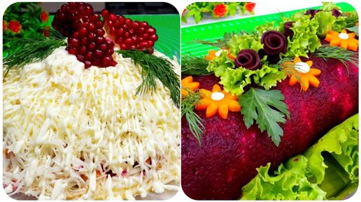 Топ-2 Праздничные салаты.Как красиво украсить салаты.