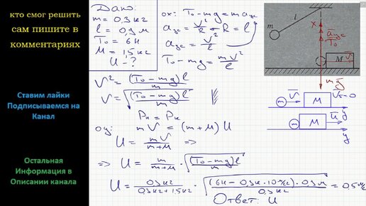 Физика Маленький шарик массой m = 0,3 кг подвешен на легкой нерастяжимой нити длиной l = 0,9 м, которая разрывается при силе натяжения T0