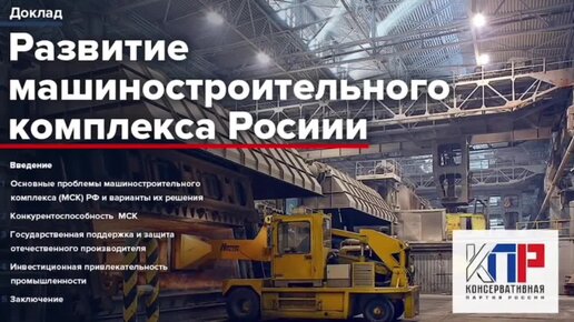 Модернизация машиностроительного комплекса России: доклад экспертов Консервативной партии России