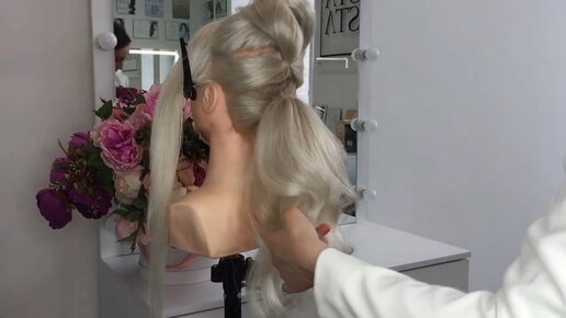 Эффектная новогодняя прическа ВЫСОКИЙ ХВОСТ #популярное #прическипошагово #прическасвоимируками #прическивидео #прическинадлинныеволосы