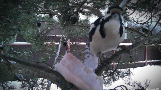 Дятел с характером. #дятел #сойка #синица #сало #кормушка