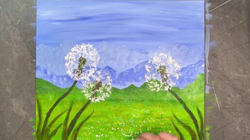 Мастер-класс по рисованию акрилом на холсте. Рисуем горный пейзаж и одуванчики