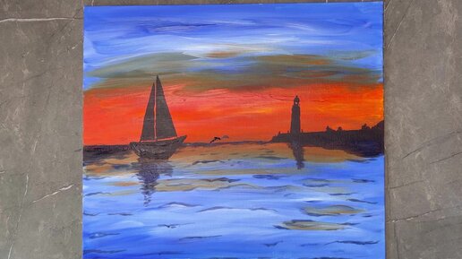 Как нарисовать морской пейзаж в силуэтной технике