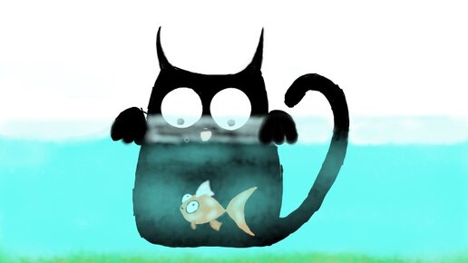 КОТИК И РЫБКА: РИСУЮ ЗА 10 МИНУТ