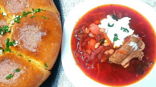 ЧЕРВОНИЙ БОРЩ ІЗ КВАСОЛЕЮ та свинячими реберцями
