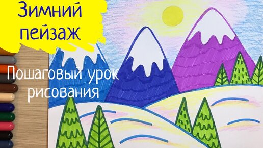 Зимний пейзаж легко Зима рисунок для детей Легкие рисунки Горы лес рисунок карандашом Рисуем зиму. Карандаши и краски