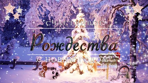 "Счастливого Рождества" "С Новым Годом" Два веселых снеговика во дворе под рождественскую музыку.