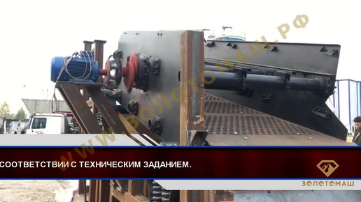 Пробный запуск промприбора с ГИТ-42 на площадке ЗолотоМаш. Проверка работы, настройка оборудования. Крепление сит на грохот.