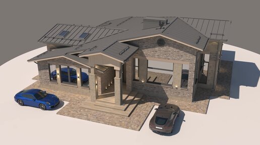 Проект "БРЮЛЕ" 200 м2 одноэтажного дома с потолками в уровнях и 3 спальнями. Придумал дом в своём стиле.