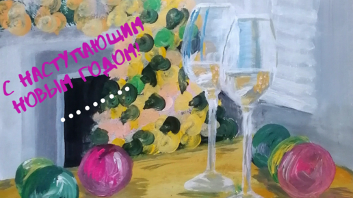 БОКАЛЫ ШАМПАНСКОГО🥂🎄| Как нарисовать прозрачное стекло