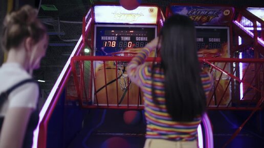 Девчонки играют на баскетболе