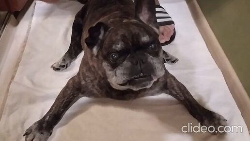 Бульдог и Еда. Часть 2. Новая добавка перед едой и теперь Хрюша ест лёжа! Смотреть со звуком.