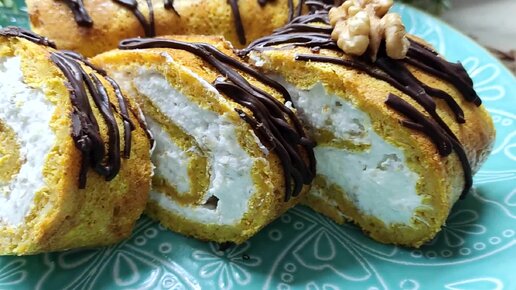 Морковный рулет с ароматом апельсина и творожным кремом