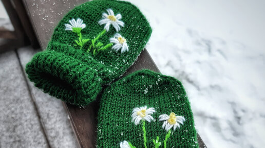 Украшаем варежку, вышиваем ромашку ❤