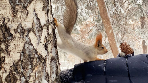 Красивое видео снегопада в парке с белками | Beautiful video of snowfall