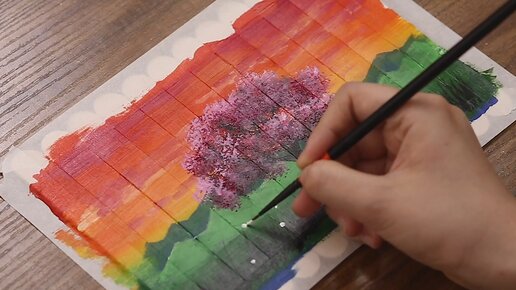Красная, оранжевая, желтая, зеленая и синяя краска | Как легко нарисовать красивое дерево | Живопись акрилом