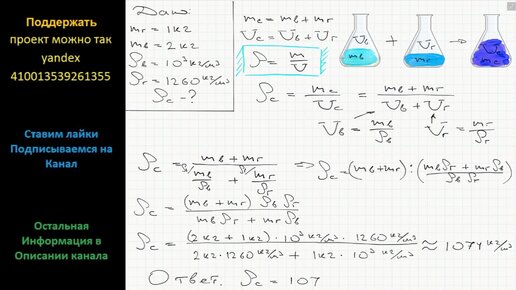 Физика 1 кг глицерина и 2 кг воды наливают в сосуд и аккуратно перемешивают. Считая, что объём смеси жидкостей равен сумме их начальных
