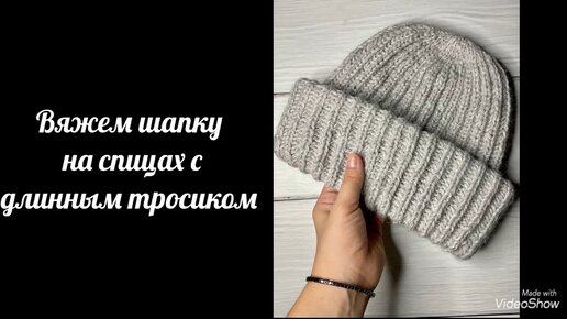Вяжем шапку по кругу на спицах с длинным тросиком #шапкаспицами #шапкаизпуханорки #шапкаанглийскойрезинкой