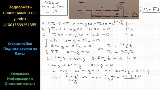 Физика Система, состоящая из двух однородных стержней разной плотности, находится в равновесии. Масса верхнего стержня m1= 3,6 кг. Трение
