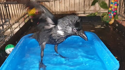 Галка и новый лоток для купания. Часть 2. Ура, залез!