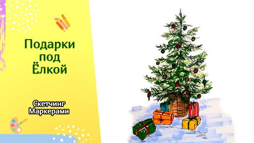 ПОДАРКИ ПОД ЁЛОЧКОЙ | Новогодний скетч маркерами для начинающих