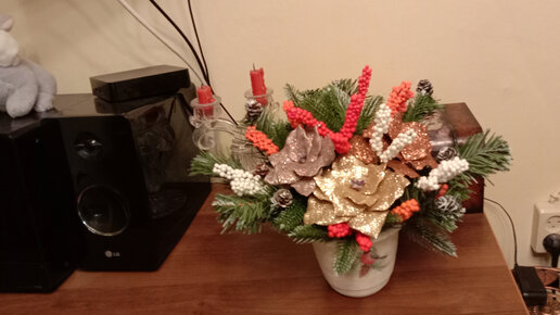 Зимняя композиция своими руками. Новогодняя икебана из цветов и ягодок ручной работы