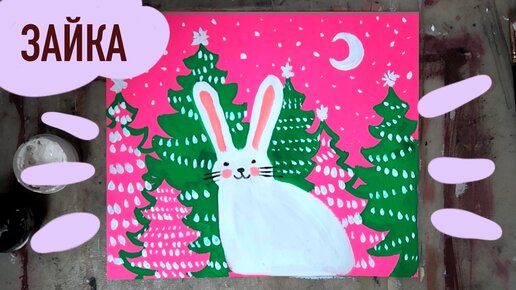 Как нарисовать кролика зайца на новый год красками, пошаговый урок для детей и взрослых