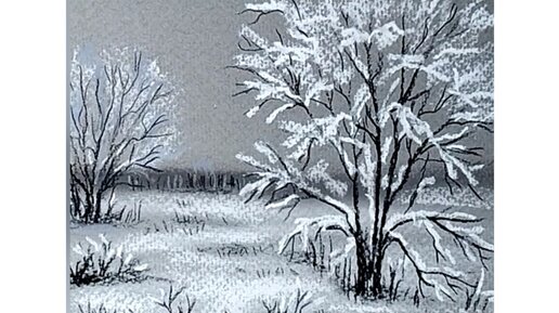🌨️❄️🌨️Заснеженный куст. Зарисовка угольным карандашом и сухой пастелью.🌨️❄️🌨️