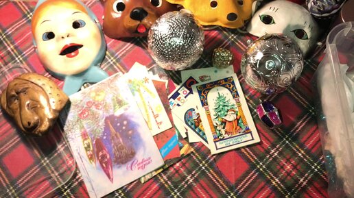 распаковка советских елочных игрушек с блошиного рынка. Советские открытки и новогодние маски