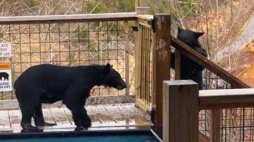 Медвежата прогнали людей из бассейна и искупались сами – кадры дикой природы