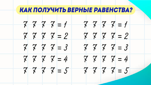 Как расставить знаки и скобки так, чтобы равенства стали верными? Занимательная математика