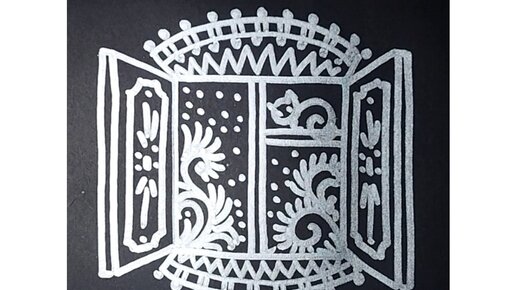 Узорчатые окошко. Рисунок маркером металлик на черной бумаге.