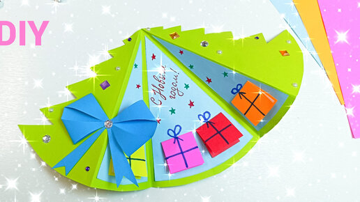 Открытка на Новый Год своими руками-Ёлочка с подарками🎄