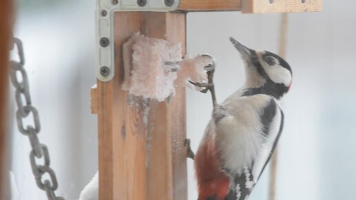 За окном. Дятел и синичка