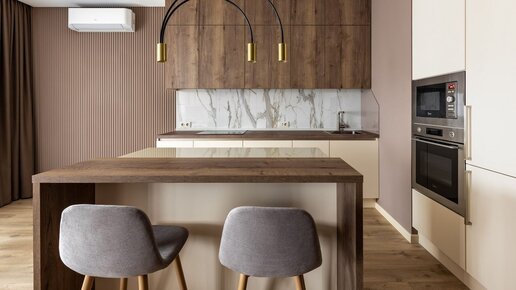Интерьер квартиры-студии в современном стиле, в приятной шоколадно-сливочной цветовой гамме.