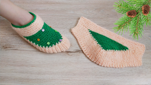 Новогодние детские следки спицами 🌲🌲🌲узором Ёлочка