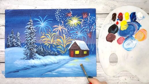 Как легко нарисовать новогодний салют с помощью 5 цветов 🎇🎄🎨 Пошаговое видео🎥