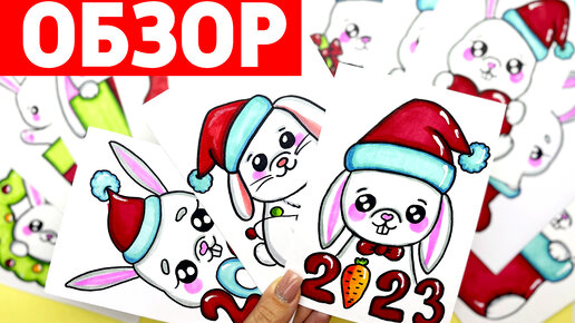 Рисунки на Новый Год 2023 | Много Идей Рисунков Кроликов для Новогодней Открытки 2023 | Обзор